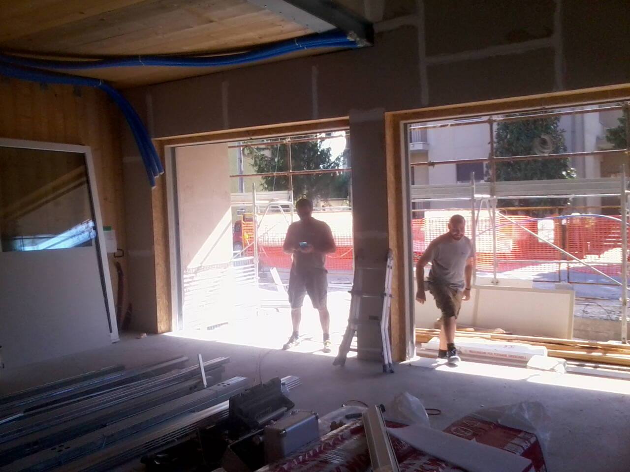 CASA IN LEGNO SU TRE PIANI. In una situazione come questa è fondamentale predisporre tutto correttamente in fase di progetto. Oltre all'estetica, sono fondamentali isolamento termico e assoluta assenza di ponti termici. Qui stiamo montando infissi in PVC INTERNORM KF405 e scorrevoli alzanti sempre INTERNORM. Tapparelle orientabili ORIENTA e frangisole METALUNIC DI GRISSER. IL TOP A LIVELLO EUROPEO