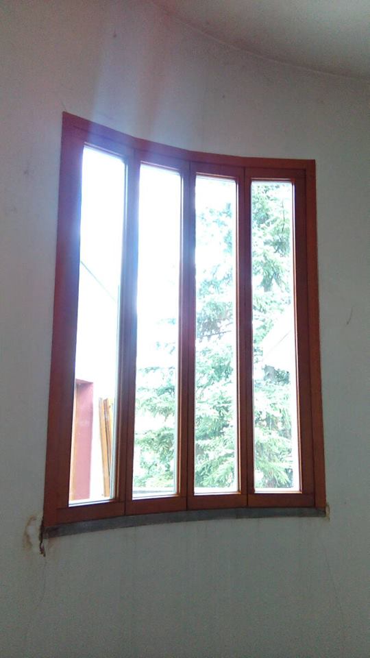 Qui invece abbiamo una finestra su muro curvo in legno-allumino il massimo dell'estetica legata alla tecnica: